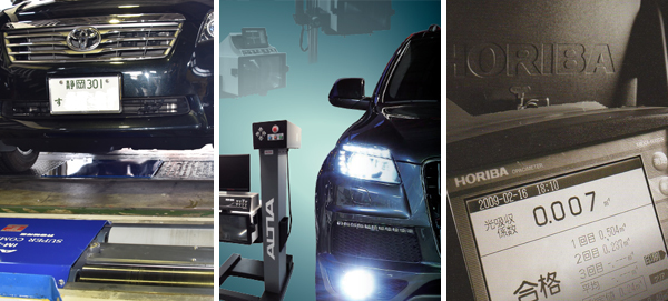 ヘッドライトテスター(光軸測定検査)・排気ガス測定