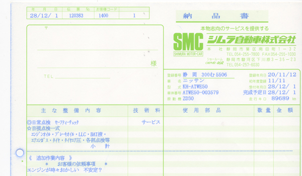 自動車整備にはいろいろな検査機器が必要となります。 シムラ自動車には大型の機器が完備されていますので安心してご用命頂けると自負しております。 また整備完了後お車をお渡しする際、お客様に「整備保証書」を発行しております。